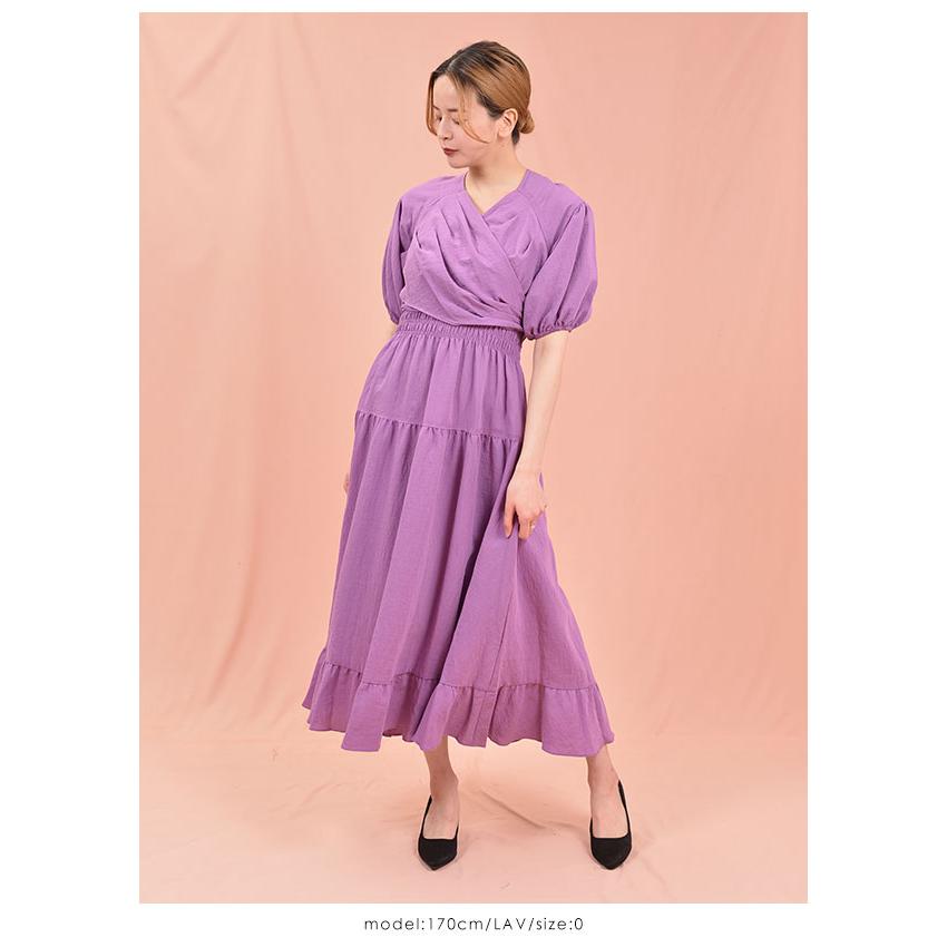 和柄リボンカシュクールロングワンピース Purple Shanit
